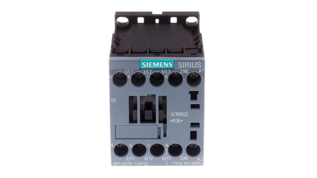 Contattore Siemens, serie 3RT2, 3 poli, 3 contatti normalmente aperti, corrente nominale 7 A, potenza nominale 3 kW, tensione bobina 110 V c.a., tensione nominale contatto 400 V c.a., collegamento a vite, dimensioni 45 mm x 57.5 mm x 73 mm, temperatura operativa da -25°C a +60°C, conforme a CE, UL, CSA, CCC.