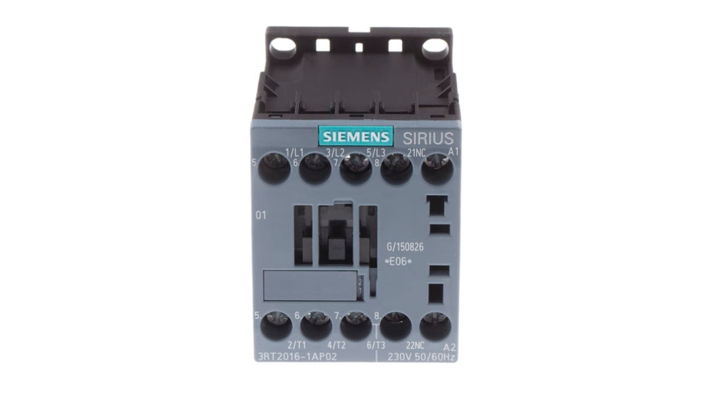 Contattore Siemens, serie 3RT2, 3 poli, 3 NA, 9 A, 4 kW, bobina 230 V c.a., tensione nominale contatto 400 V c.a., resistenza tensione di impulso 6 kV, tensione di isolamento 690 V, perdita reale di potenza 4 W, collegamento a vite, dimensioni 45 mm x 57.5 mm x 73 mm, temperatura operativa da -25°C a +60°C, conforme a CE, UL, CSA, CCC.