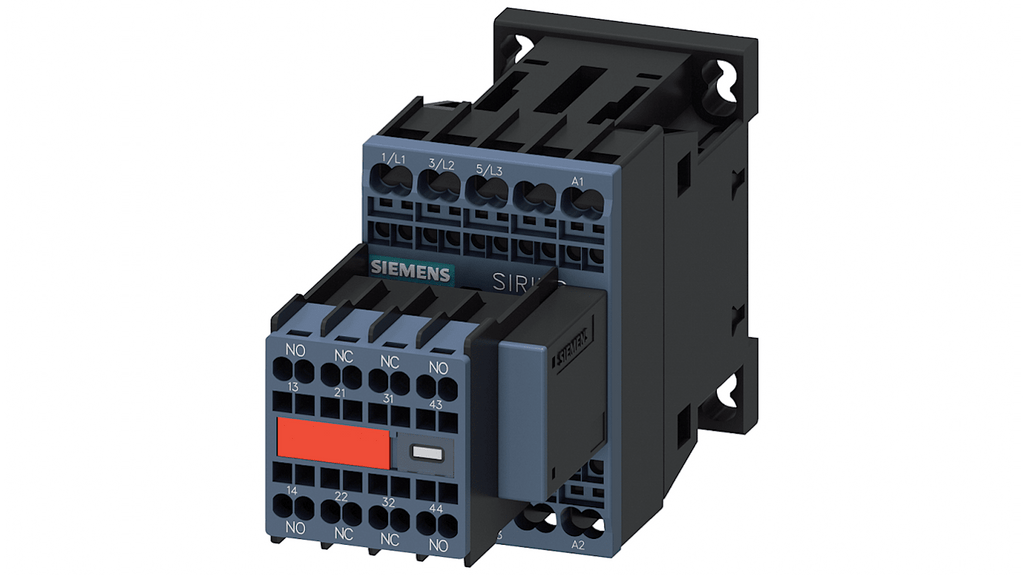 Contattore di potenza per commutazione condensatore, 3 poli, 2 NO + 2 NC, corrente nominale 22 A, potenza nominale 4 kW, tensione bobina 400 V, terminali a molla, temperatura d'esercizio -25 a +60 gradi Celsius, connettore inserito nel varistore. Codice costruttore 3RT2016-2CP04-3MA0, marchio Siemens.