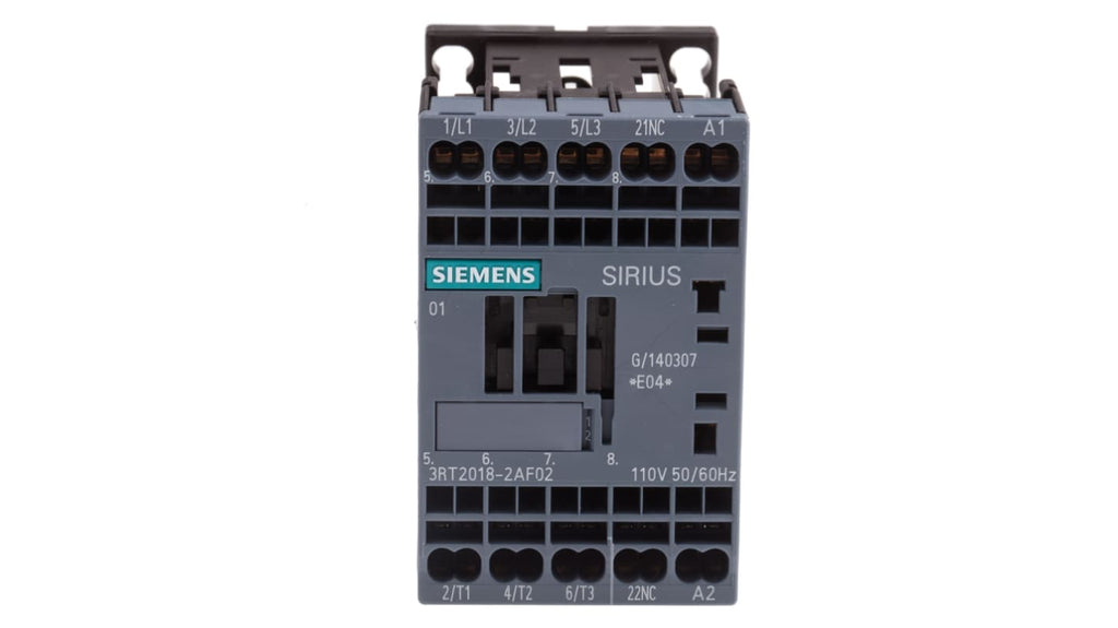 Contattore Siemens, serie 3RT2, 3 poli, 3 NA, 16 A, 7,5 kW, bobina 110 V c.a., tensione nominale contatto 400 V c.a., resistenza tensione di impulso 6 kV, tensione di isolamento 690 V, perdita reale di potenza 4 W, morsetto a gabbia, dimensioni 45 mm x 70 mm x 73 mm, temperatura operativa da -25°C a +60°C, conforme a CE, UL, CSA, CCC.