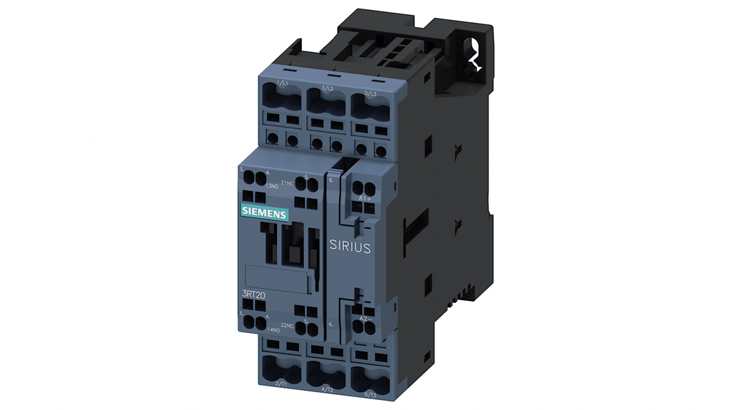 Contattore reversibile Siemens, 3 poli, 1 NO + 1 NC, potenza nominale 5,5 kW, AC-3 12 A, tensione 400 V, alimentazione 24 V c.c., terminal a molla, varistore integrato, misura S0, compatibile con uscite PLC relè di accoppiamento Sirius 3RT2, progettato per motori di commutazione e circuiti ausiliari e di controllo.