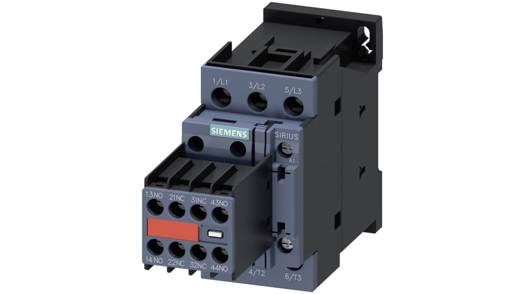Contattore Siemens, serie 3RT2, 3 poli, 3 NO, 16 A, 7,5 kW, bobina 230 V c.a., tensione nominale contatto 690 V c.a., resistenza tensione di impulso 6 kV, perdita reale di potenza 4 W, collegamento a vite, dimensioni 45 mm x 140.7 mm x 85 mm, temperatura operativa da -25°C a +60°C, conforme a CE, UL, CSA, CCC.