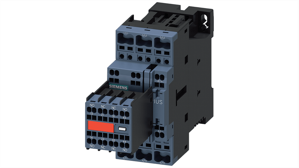 Contattore reversibile per motori, 3 poli, 2NC + 2NO, corrente nominale 25 A, potenza nominale 11 kW, tensione bobina 24 V c.c., montaggio a vite e snap-on, temperatura ambiente d'esercizio da -25 a +60 gradi, design compatto, approvato IEC e UL/CSA, interruttore ausiliario prigioniero, collegamento elettrico tramite terminal caricato a molla. Codice costruttore 3RT2026-2FB44-3MA0, marchio Siemens.