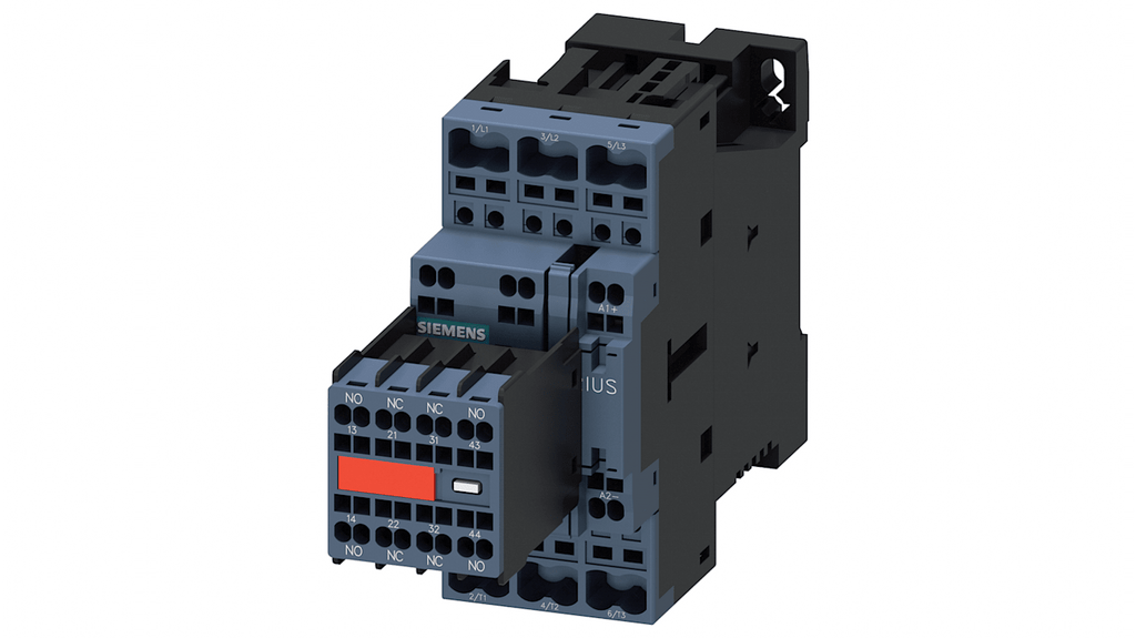 Contattore reversibile Siemens, 3 poli, 2 NO + 2 NC, potenza nominale 15 kW, AC-3 32 A, tensione 400 V, alimentazione 24 V c.c., misura S0, terminali a molla, interruttore ausiliario prigioniero, progettato per motori di commutazione, compatibile con la gamma SIRIUS. Ideale per applicazioni industriali con cablaggio semplificato.