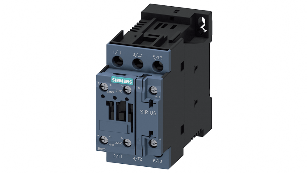 Contattore reversibile Siemens, 3 poli, 1 NO + 1 NC, potenza nominale 18,5 kW, AC-3 38 A, 400 V, alimentazione 24 V c.c., morsetti a vite, interruttori ausiliari integrati, progettato per motori di commutazione, compatibile con sistema modulare Sirius, comunicazione in parallelo tramite ASI o io-link.