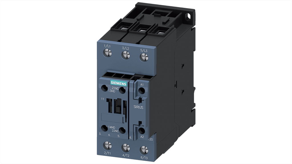 Contattore Siemens, 3 poli, 1 NO + 1 NC, 65 A, 30 kW, bobina 24 V c.c., montaggio a vite e snap-on, temperatura ambiente -40 a +70 °C, grado di protezione IP20 per i terminali, IP00 per il corpo, approvato IEC e UL/CSA, progettato per condizioni estreme, morsetti a vite, interruttori ausiliari integrati, compatibile con sistema di alimentazione Sirius 3RV29. Codice costruttore 3RT2037-1XB40-0LA2.