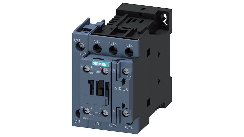 Contattore reversibile Siemens, 4 poli, 1 NO + 1 NC, AC-1, 50 A, 400 V, 40 C, 24 V c.c., terminali a vite, serie SIRIUS 3RT23, progettato per la commutazione di carichi resistivi, resistente agli agenti atmosferici, conforme a normative IEC e UL/CSA.