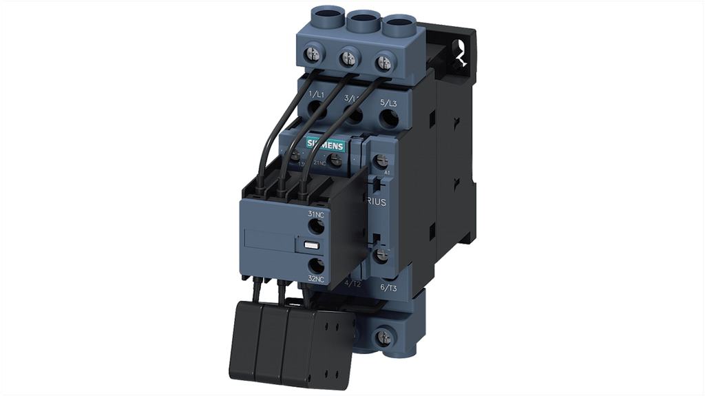 Contattore per commutazione condensatore Siemens, 3 poli, 1NO + 2NC, tensione bobina 230 V c.a., corrente nominale 47,6 A, design compatto, terminali a vite, parte del sistema SIRIUS, resistente agli agenti atmosferici, approvato per uso globale, interruttori ausiliari integrati, cablaggio semplificato.