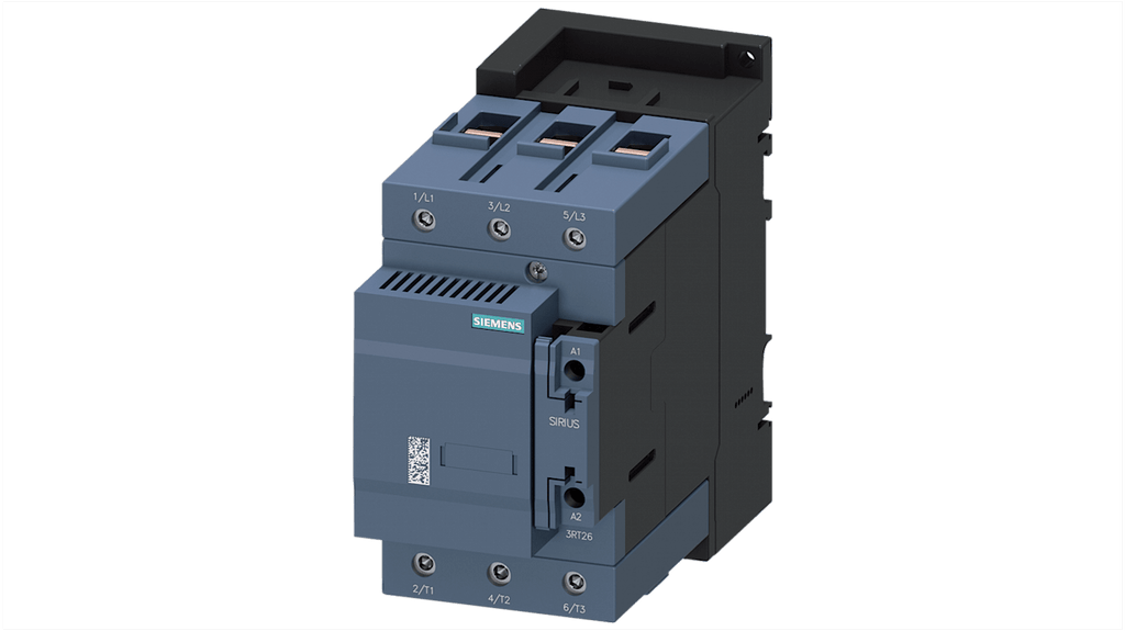 Contattore Siemens per commutazione di carichi capacitivi, serie 3RT26, 3 poli, 2 contatti normalmente chiusi, corrente nominale 10 A, tensione bobina 400 V, tensione nominale contatto 110 V. Protezione contro cortocircuiti e sovraccarichi, conforme agli standard IEC 60947-1 e IEC 60947-4-1. Configurazione SIRIUS. Codice costruttore 3RT26461AF05.