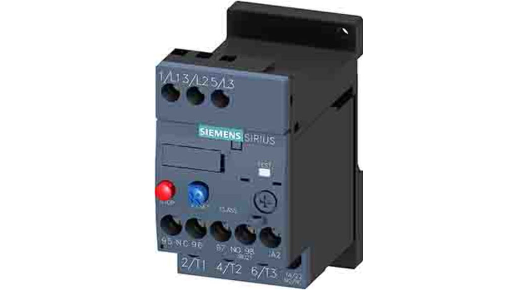 Relè di sovraccarico Siemens, carico FLC 0,8 A, corrente nominale da 0,55 a 0,80 A, contatto 800 mA, circuito principale a vite, circuito ausiliario reset manuale a vite, potenza nominale 0,18 kW, 0,25 kW, 0,37 kW, tensione di controllo 690 V ca, compatibile con SIRIUS. Codice costruttore 3RU2116-0HB1.