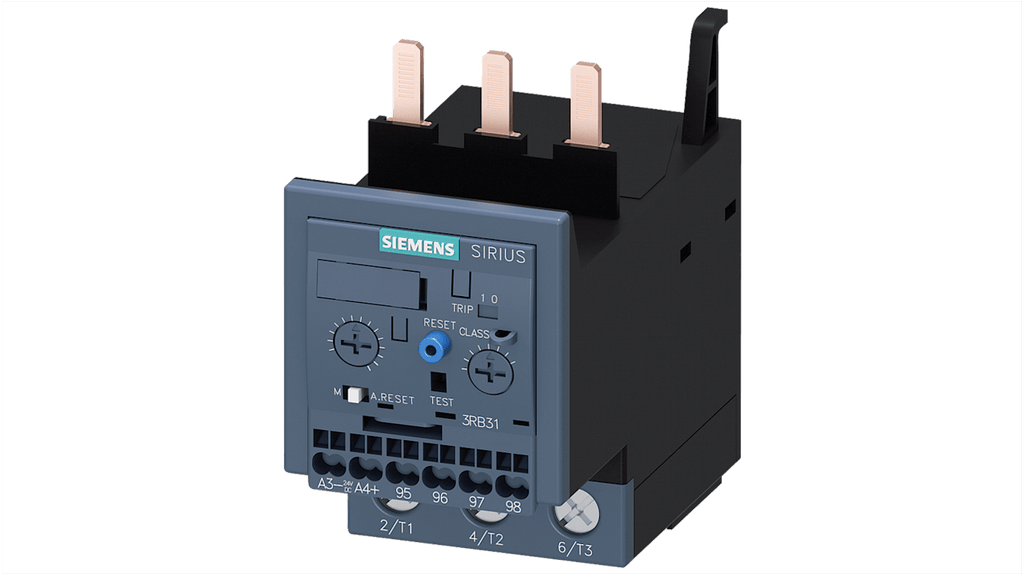 Relè contattore Siemens per protezione motore, 1NC/1NO, carico FLC 0,16 A, corrente nominale contatto 3 A, dimensione S00, circuito principale installazione autonoma classe 10, circuito ausiliario con terminale a molla, dispositivo di reset automatico manuale, resistenza sovratensioni 6 kV, resistenza agli urti 8 g/11 ms, frequenza d'esercizio 50-60 Hz, potenza nominale 0,06 kW. Codice costruttore 3RU21160AC1.