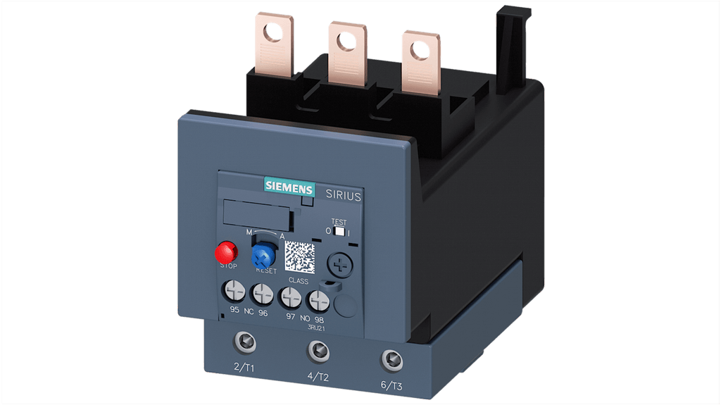 Relè di sovraccarico Siemens, carico FLC 63 A, corrente nominale contatto 3 A, corrente nominale da 45 a 63 A, circuito principale a vite, circuito ausiliario reset manuale a vite, tensione di controllo 690 V, compatibile con SIRIUS. Codice costruttore 3RU2146-4JB0.