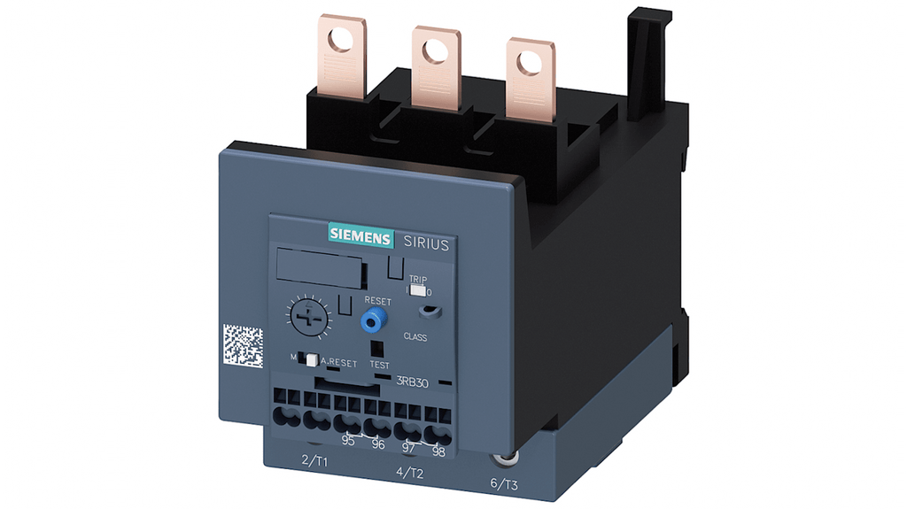 Relè contattore Siemens per protezione termica motore, carico FLC 40 A, corrente nominale contatto 3 A, configurazione 1NC/1NO, dimensione S3, montaggio su contattore classe 10, circuito ausiliario a vite, dispositivo di reset automatico manuale a vite, resistenza alle sovratensioni 6 kV, resistenza agli urti 8 g/11 ms, frequenza d'esercizio 50-60 Hz, potenza nominale 37 kW.