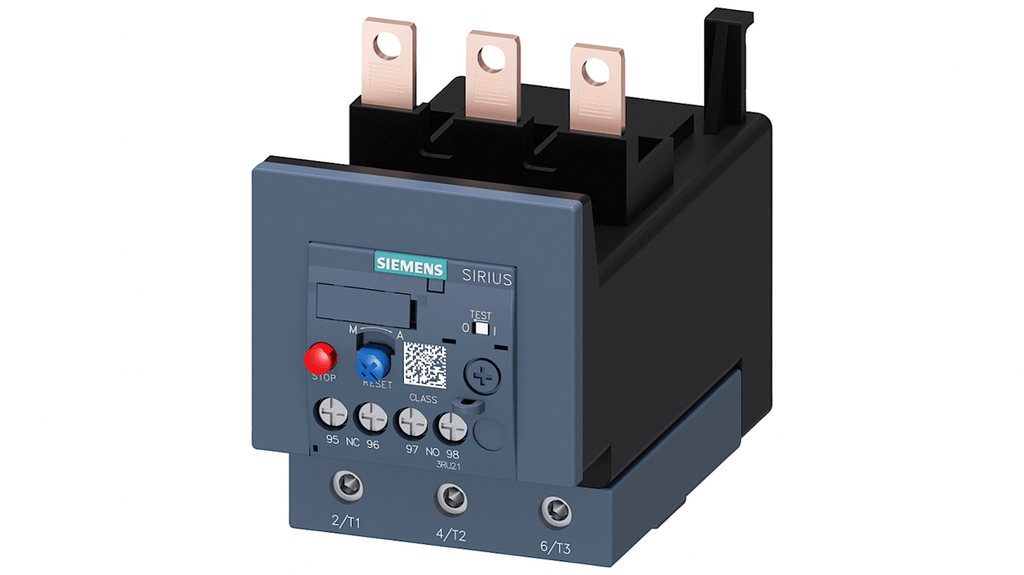 Relè contattore per protezione motore, 1NC/1NO, carico FLC 40 A, corrente nominale contatto 3 A, configurazione polo 3P, potenza nominale 37 kW, resistenza sovratensioni 8 kV, resistenza agli urti 8 g/11 ms, frequenza di funzionamento 50-60 Hz, perdita di potenza 13,5 W, dispositivo di reset automatico manuale, montaggio a vite. Codice costruttore 3RU21464FD0, marchio Siemens.