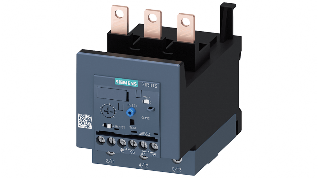 Relè contattore Siemens per protezione termica motore, carico FLC 63 A, corrente nominale contatto 3 A, configurazione 1NC/1NO, dimensione S3, circuito principale di installazione autonoma classe 10, circuito ausiliario a vite, dispositivo di reset automatico manuale, resistenza sovratensioni 8 kV, resistenza agli urti 8 g, perdita di potenza 17,1 W, frequenza d'esercizio 50-60 Hz, potenza nominale 55 kW.