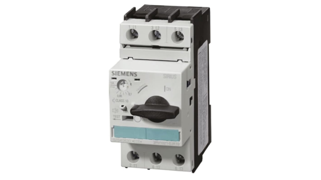 Interruttore magnetotermico Siemens 3P 2A 100 kA, numero di poli 3P, amperaggio 2A, tensione nominale c.a. 690 V, 1000 V, capacità di rottura 100 kA, gamma SIRIUS, serie 3RV10, tipo MCB, montaggio guida DIN, dimensioni 97 mm x 45 mm x 96 mm. Codice costruttore 3RV1021-1BA10.