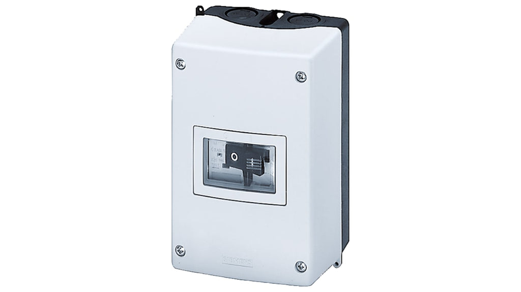 Unità per utenze civili, Siemens 3RV1913-1DA00, IP55, dimensioni 194 x 89mm. Contenitore SIRIUS 3RV1 con terminali N e PE, due ingressi cavo superiori e inferiori, fori di montaggio per spie. Tecnologia a morsetto a gabbia per collegamenti rapidi e affidabili, resistente a urti e vibrazioni. Montaggio a filo o a parete, sagomato in plastica o alluminio.