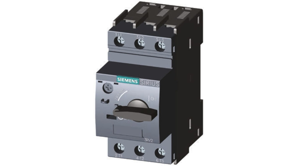 Interruttore automatico per la protezione del motore, corrente nominale 0,22 a 0,32 A, collegamento a vite/morsetto a molla, classe 10, resistenza tensione di impulso 6 kV, tensione di isolamento 690 V, perdita reale di potenza 6/7 W, capacità di commutazione standard, approvazioni CE/UL/CSA, dimensioni 97 mm x 45 mm x 91 mm, serie 3RV2.