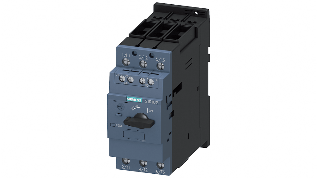 Unità controllo magnetico del motore Siemens, protezione 3RV2, 690 V, 32 A. Interruttore automatico di tipo speciale misura S00 per la protezione del motore, capacità di commutazione standard, interruttore ausiliario trasversale 1 NA + 1 NC, funzione di rilevamento guasto di fase, protezione contro i cortocircuiti. Codice costruttore 3RV2031-4EA15.