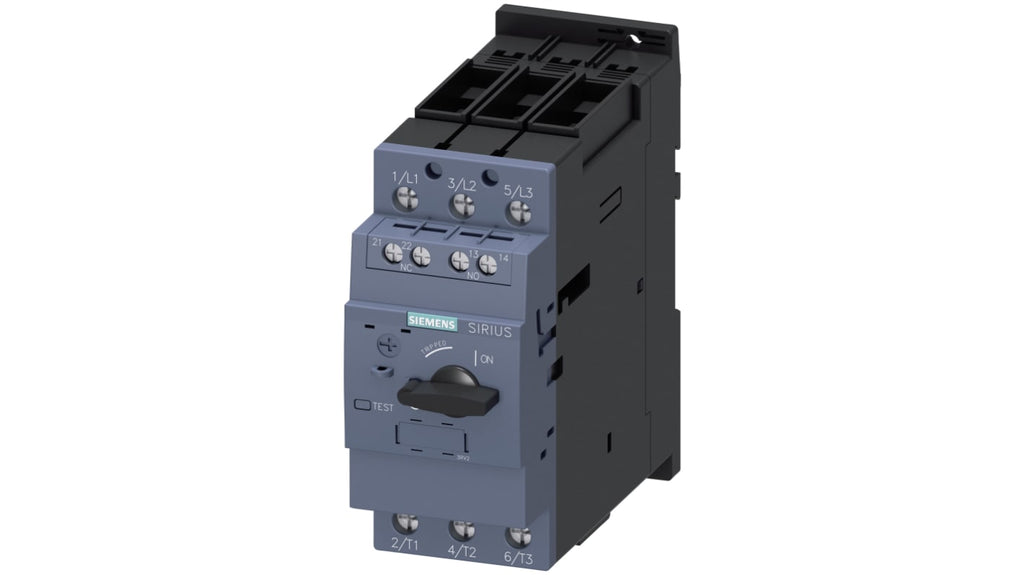 Interruttore automatico del motore Siemens, 32 a 40 A, classe di scatto 10, terminali a vite, dimensione contattore S2, capacità di commutazione standard, innesto su guide di montaggio 35 mm, temperatura ambiente da -20 a 60 gradi Celsius. Componente di protezione motore, tensione di controllo 32 a 40 A. Codice costruttore 3RV2031-4UA15.