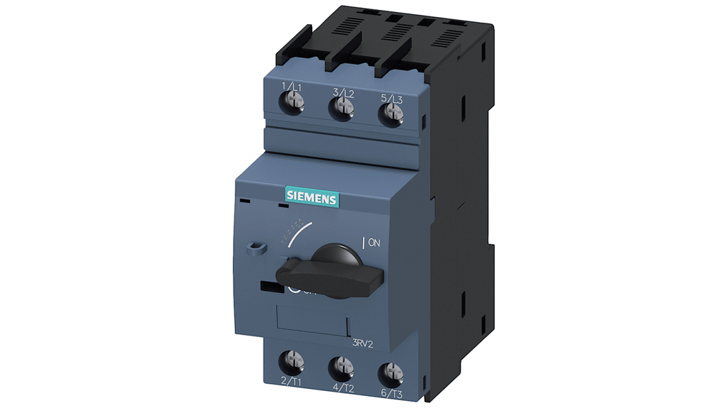 Unità controllo magnetico del motore Siemens, protezione 3RV2, 690 V, 5 A. Interruttore automatico di tipo speciale misura S00 per protezione motore, capacità di commutazione standard, interruttore ausiliario trasversale 1 NA + 1 NC, funzione di rilevamento guasto di fase, protezione contro cortocircuiti. Codice costruttore 3RV2321-1FC10.