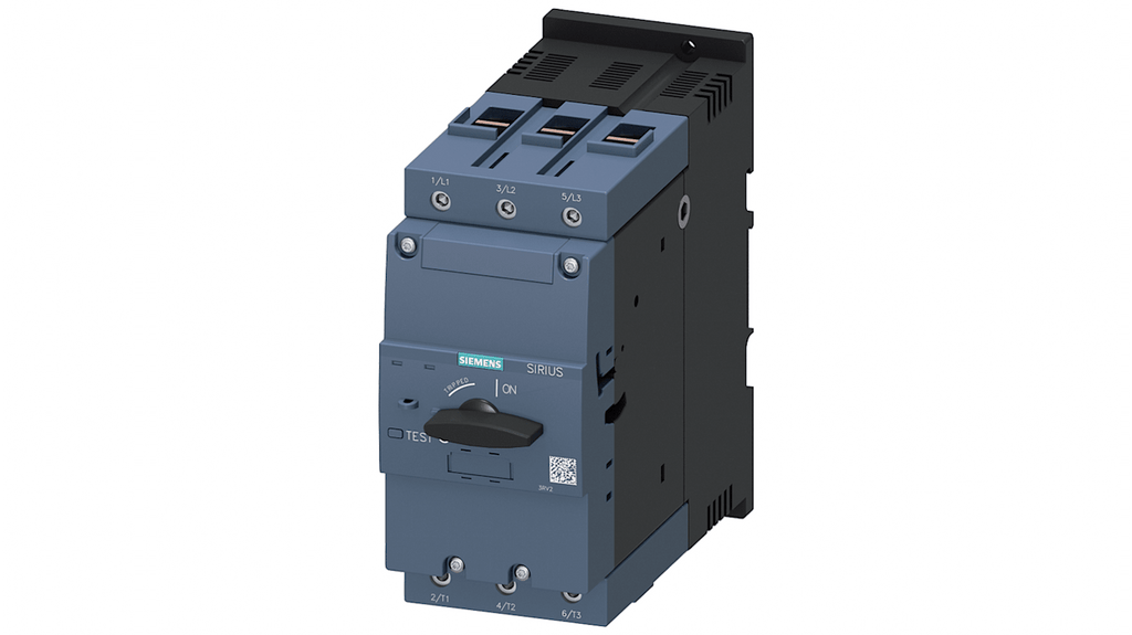 Unità controllo magnetico del motore Siemens, protezione 3RV2, 690 V, 63 A. Interruttore automatico di tipo speciale misura S00 per la protezione del motore, capacità di commutazione standard, interruttore ausiliario trasversale 1 NA + 1 NC, funzione di rilevamento guasto di fase, protezione contro i cortocircuiti. Codice costruttore 3RV2341-4JC10.