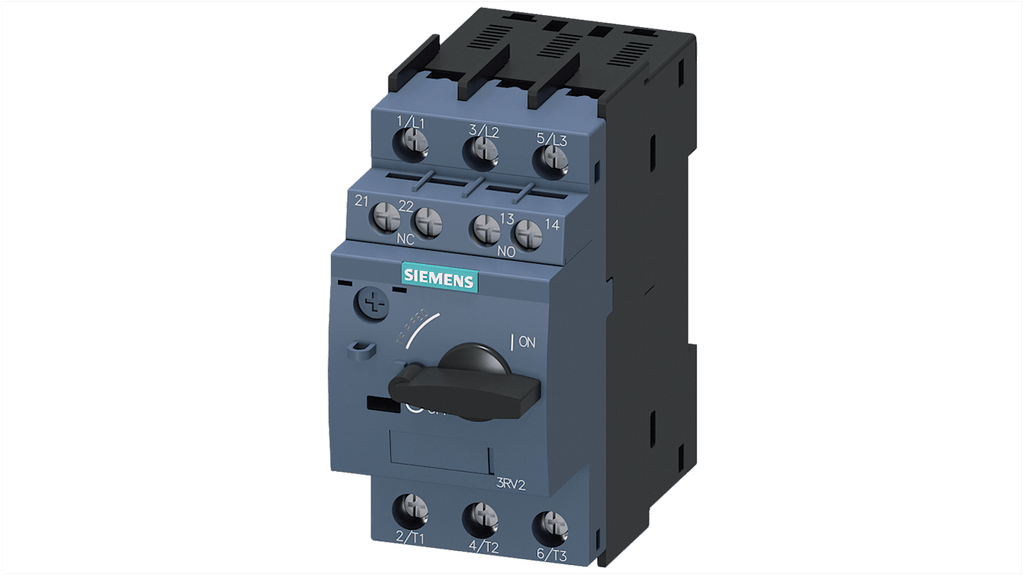 Interruttore automatico per protezione SIRIUS, tensione 690 V, corrente nominale 3,2 A, dimensione S00, bassa perdita di calore, compatto e resistente al clima, protezione contro cortocircuiti, collegamento senza manutenzione, a prova di vibrazioni, interruttore ausiliario integrato opzionale.