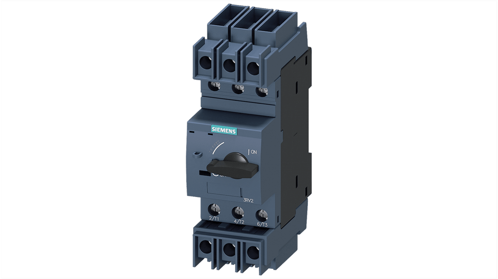 Interruttore automatico per protezione SIRIUS, corrente nominale 16 A, tensione di alimentazione 690 V, dimensione S00, bassa perdita di calore, compatto e resistente al clima, protezione contro cortocircuiti e trasformatore, collegamento senza manutenzione, a prova di vibrazioni, interruttore ausiliario integrato opzionale. Codice costruttore 3RV2711-4AD10. Marchio Siemens.