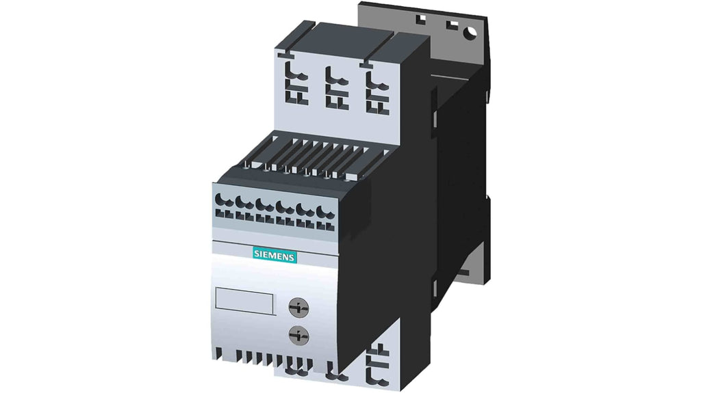 Avviatore soft-start Siemens, 3 fasi, 22 kW, 400 V c.a., IP00. Potenza nominale 22 kW, tensione nominale 400 V c.a., corrente nominale 45 A, grado di inquinamento 3, classe di protezione IP20, temperatura ambiente di conservazione da -25 a +60 gradi Celsius, serie 3RW3. Funzioni di protezione intrinseca e contro sovraccarichi del motore.