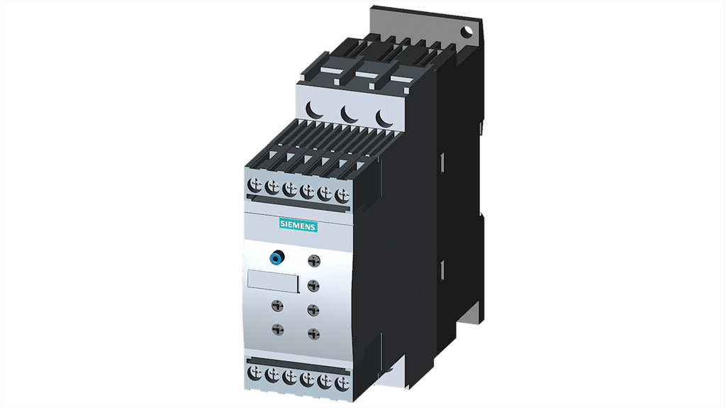 Soft starter Siemens Sirius 3RW40, potenza nominale 5,5 kW, tensione 400 V, 3 fasi, corrente nominale 12,5 A, montaggio su guida DIN. Funzione di avviamento morbido, protezione sovraccarico integrata secondo IEC 60947-4-2, contatto shunt per riduzione perdite di potenza, reset remoto. Struttura compatta, bassa dissipazione di calore, approvato IEC e UL/CSA, idoneo per aree pericolose.
