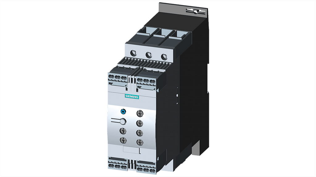 Soft starter Siemens Sirius 3RW40, potenza nominale 30 kW, tensione 400 V, 3 fasi, corrente nominale 63 A, tipo di montaggio guida DIN. Struttura compatta, bassa dissipazione del calore, protezione sovraccarico conforme a IEC 60947-4-2, limitazione corrente di avvio impostabile, reset remoto integrato, approvato IEC e UL/CSA, adatto per aree pericolose ATEX o IEC ex.