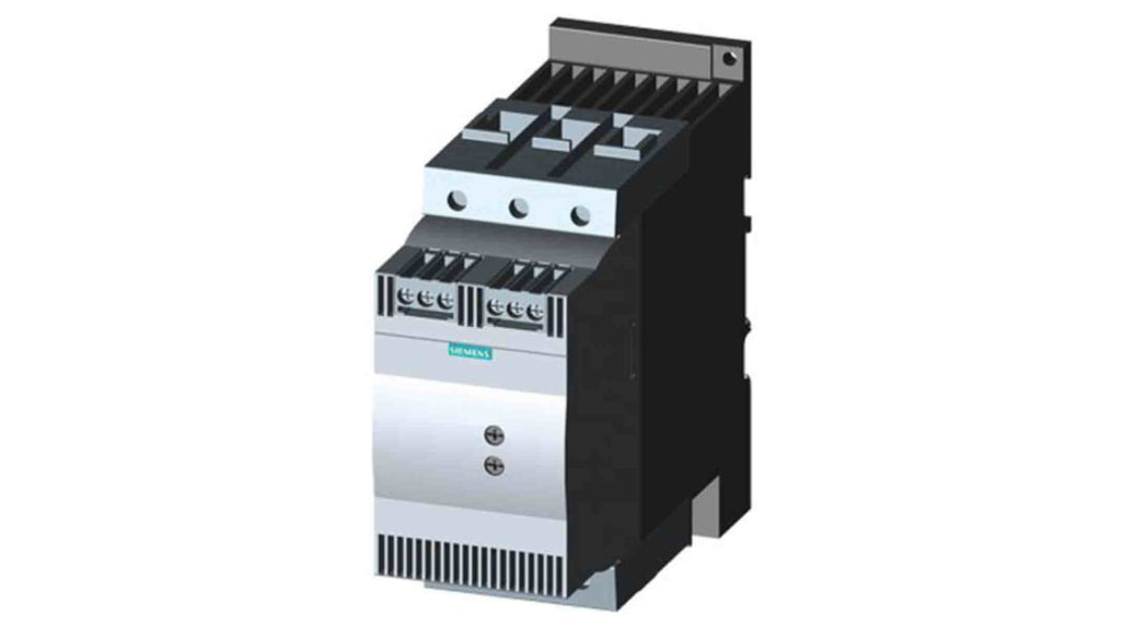 Avviatore soft-start Siemens, 3 fasi, 55 kW, 400 V c.a., IP00. Potenza nominale 55 kW, corrente nominale 106 A, grado di inquinamento 3, classe di protezione IP20, temperatura ambiente da -25 a +60 gradi Celsius. Serie 3RW4, progettato per protezione intrinseca e sovraccarichi del motore, valutazione della protezione a termistore.