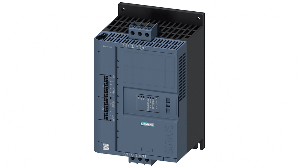 Starter DOL per motori, 3 fasi, potenza nominale 7,5 kW, tensione 480 V CA, corrente nominale 13 A, grado di protezione IP20, design modulare, diagnostica plug-and-play espandibile, costruzione rapida del pannello, progettazione con meno componenti. Codice costruttore 3RW5213-3AC15, marchio Siemens.