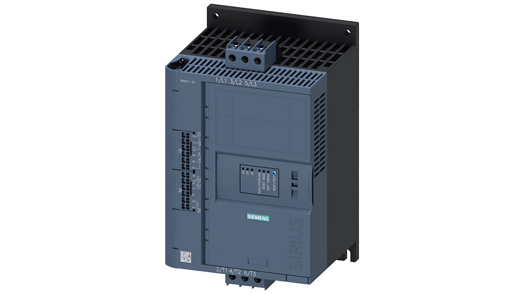 Starter DOL per motori, 3 fasi, potenza nominale 7,5 kW, tensione 480 V CA, corrente nominale 13 A, grado di protezione IP20, design modulare e compatto, diagnosi plug-and-play espandibile, costruzione rapida del pannello, minori componenti richiesti, conforme alle normative di settore. Codice costruttore 3RW5213-3TC14, marchio Siemens.