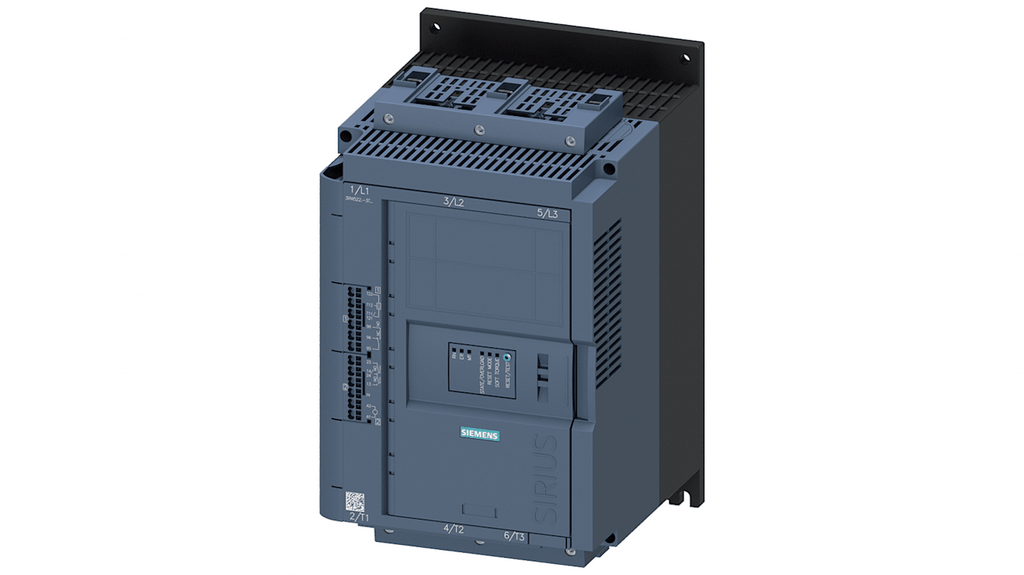Starter DOL per motori, potenza nominale 7,5 kW, tensione 480 V CA, 3 fasi, corrente nominale 77 A, grado di protezione IP20, tipo soft start, design modulare, diagnostica plug-and-play espandibile, costruzione rapida del pannello, progettazione con meno componenti. Codice costruttore 3RW5226-3TC05, marchio Siemens.