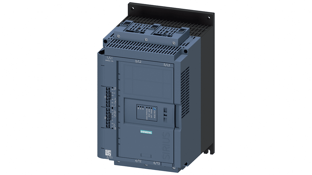 Starter DOL per motori, 3 fasi, potenza nominale 7,5 kW, tensione 480 V CA, corrente nominale 93 A, grado di protezione IP20, tipo Soft start, design modulare, diagnostica plug-and-play espandibile, progettazione rapida con meno componenti, costruzione veloce del pannello. Codice costruttore 3RW5227-3AC14, marchio Siemens.
