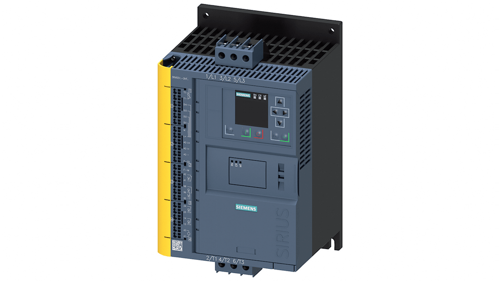 Starter DOL per motori, 3 fasi, potenza nominale 7,5 kW, tensione 480 V CA, corrente nominale 32 A, grado di protezione IP20, design modulare, diagnostica plug-and-play espandibile, costruzione rapida del pannello, progettazione con meno componenti. Codice costruttore 3RW5516-3HF14, marchio Siemens.