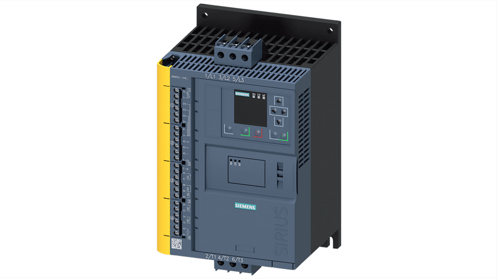 Avviatore soft-start Siemens, 3 fasi, 11 kW, 480 V CA, IP20. Potenza nominale 11 kW, corrente operativa 38 A, grado di protezione IP20. Tipo motor starter soft start, tensione nominale 480 V CA, compatibile con azionamenti da 5,5 kW a 560 kW. Montaggio verticale, fissaggio a vite, dimensioni 275 mm x 170 mm x 152 mm. Moduli di comunicazione a innesto disponibili.