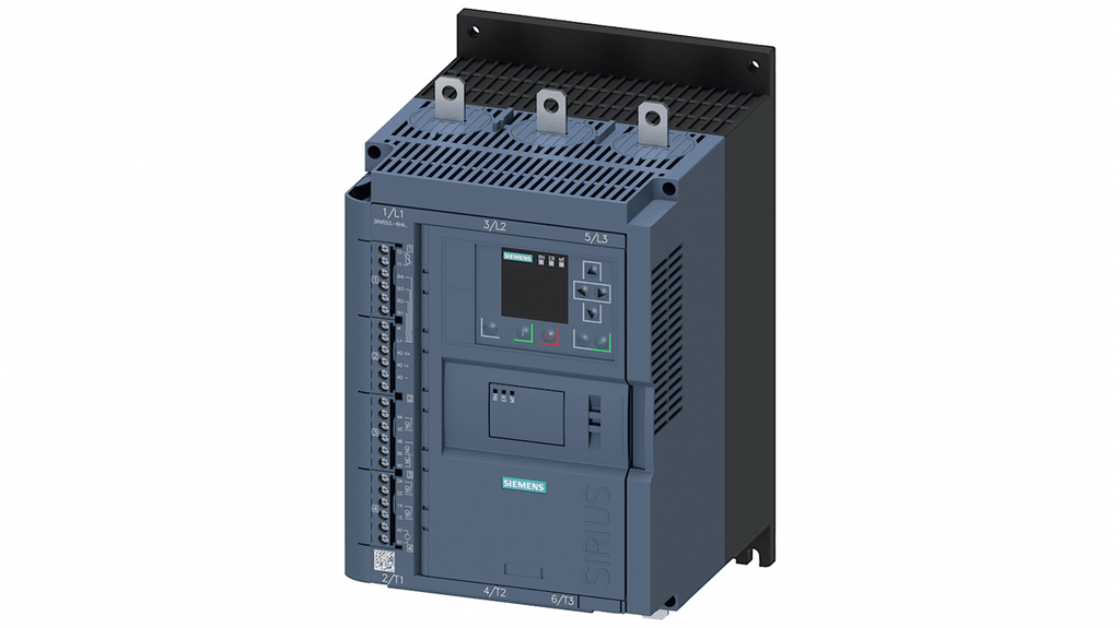 Starter DOL per motori, 3 fasi, potenza nominale 7,5 kW, tensione 480 V CA, corrente nominale 143 A, grado di protezione IP20, design modulare, diagnostica plug-and-play espandibile, costruzione rapida del pannello, ridotto numero di componenti. Codice costruttore 3RW5535-6HA06, marchio Siemens.