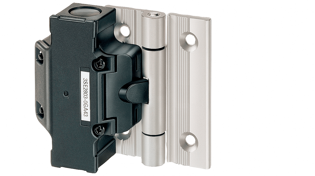 Interruttore a cerniera Siemens con cerniera in alluminio, configurazione 3NC, contatti ad azione lenta, angolo di azionamento 8 gradi, classe di protezione IP65, contenitore in plastica stampata, fornito con cerniera e materiale di fissaggio aggiuntivi, compatibile con profili da 40 mm. Codice costruttore 3SE2283-6GA53.