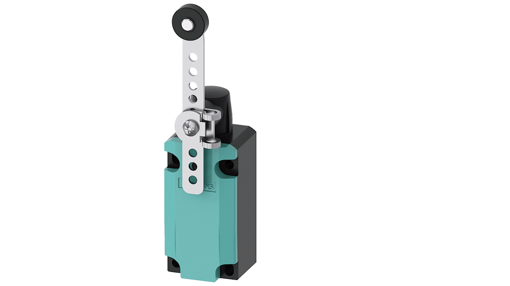 Interruttore di fine corsa Siemens, attuatore rotante regolabile, leva in metallo, 1NC/1NA, protezione IP66/IP67, tensione massima 400V, corrente massima 4A, custodia in metallo, montaggio positivo, rullo in plastica da 19 mm, conforme a EN 50041, collegamento dispositivo M20 x 1,5.