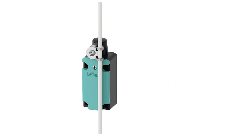 Interruttore di fine corsa Siemens, Asta, 1NC/1NA, 400V, 4A, IP65, IP67. Contenitore metallico, attuatore rotante regolabile, leva ad asta in plastica lunga 200 mm, collegamento dispositivo M20 x 1,5, classe di protezione IP66/IP67, rivestimento catodico a immersione, conforme a EN 50041.