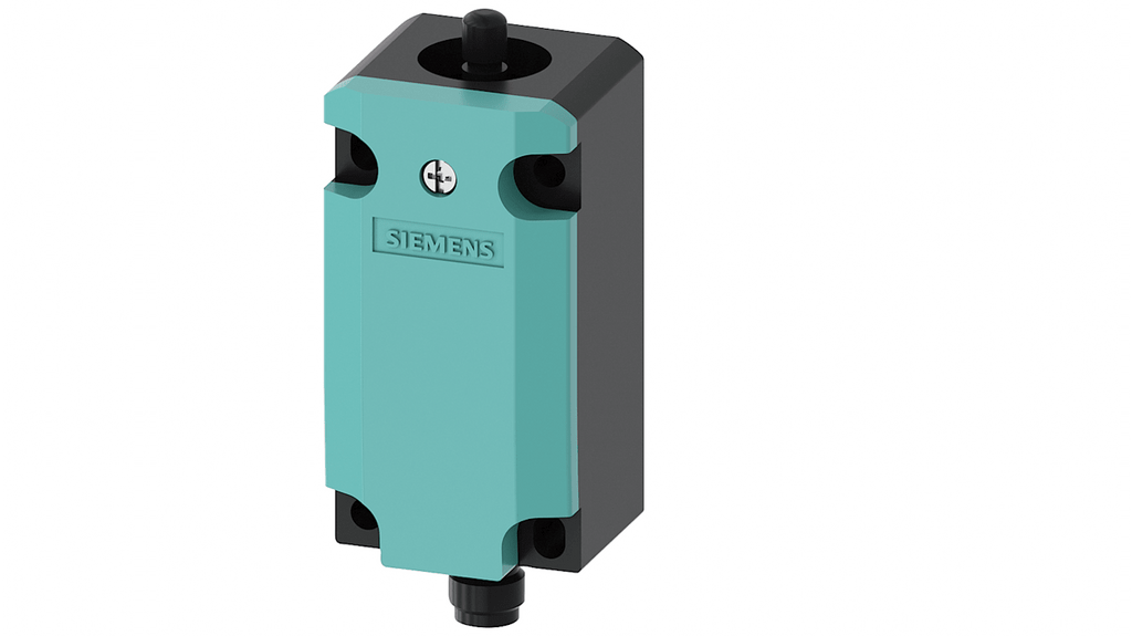 Interruttore di fine corsa Siemens, stantuffo, 2NC/1NA, 125V, 4A, IP66/IP67, contenitore in metallo, connettore M12 a 5 poli, contatti ad azione rapida, apertura positiva, rivestimento catodico a immersione, conforme a EN 50041. Codice costruttore 3SE5114-0LA00-1AE1.