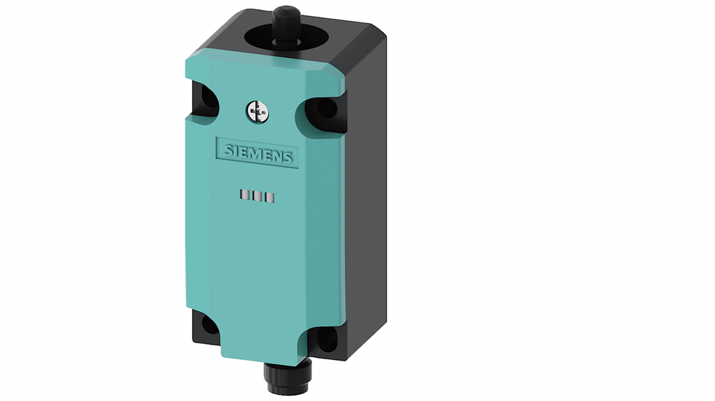 Interruttore di fine corsa Siemens, stantuffo, 1NC/1NA, 125V, 3A, IP66/IP67, contenitore metallico, conforme a EN 50041, attuatore rotante regolabile, leva in metallo lunga 27 mm, rotella in plastica di 19 mm, apertura positiva, dotato di 2 LED giallo/verde, rivestimento catodico a immersione. Codice costruttore 3SE5114-1CA00-1AF5.