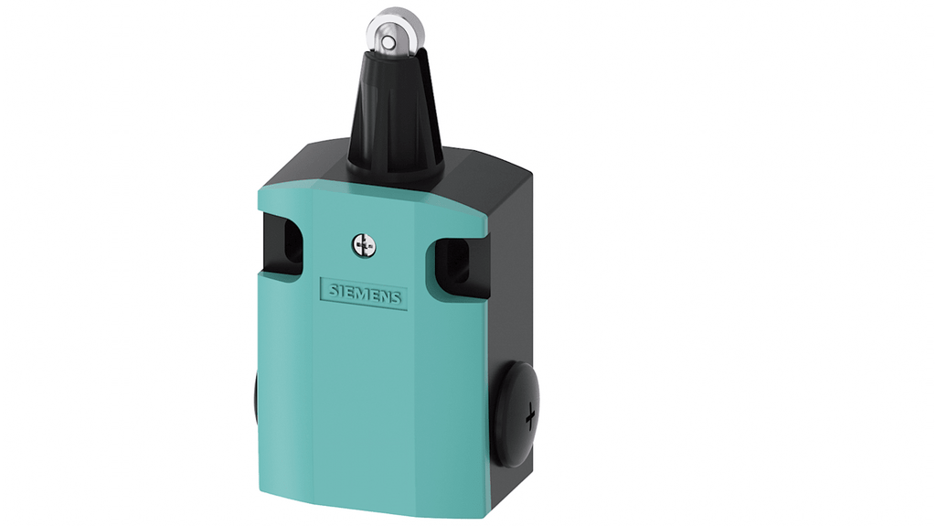 Interruttore di fine corsa Siemens, tasto a rotella, 1NC/1NA, protezione IP66/IP67, corrente massima 4A, tensione massima 400V, custodia in metallo, collegamento dispositivo 56 mm di larghezza, ingresso cavo tipo 3x (M20x1,5), contatti a bassa azione, apertura positiva, rivestimento catodico a immersione, adatto per interruttore di sicurezza. Codice costruttore 3SE5122-0BD02.