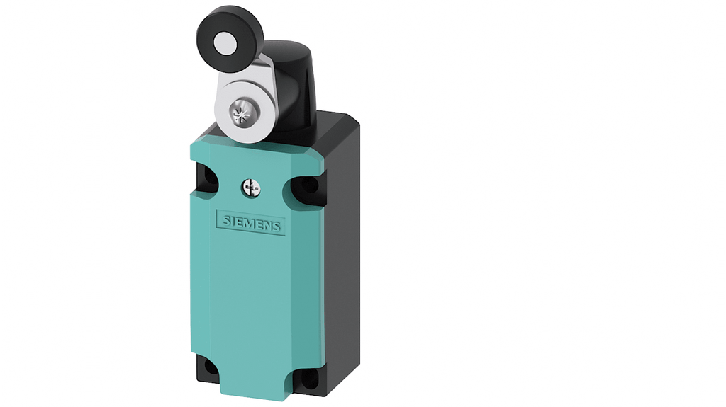 Interruttore di fine corsa Siemens, leva a rullo, 2NA/1NC, 250V, 4A, IP66/IP67. Contenitore in plastica, attuatore con leva a rotazione da 40 mm, collegamento dispositivo M20 x 1,5. Leva in metallo lunga 27 mm, rotella in plastica di 19 mm. Conforme a EN 50041, apertura positiva, adatto per interruttore di sicurezza.