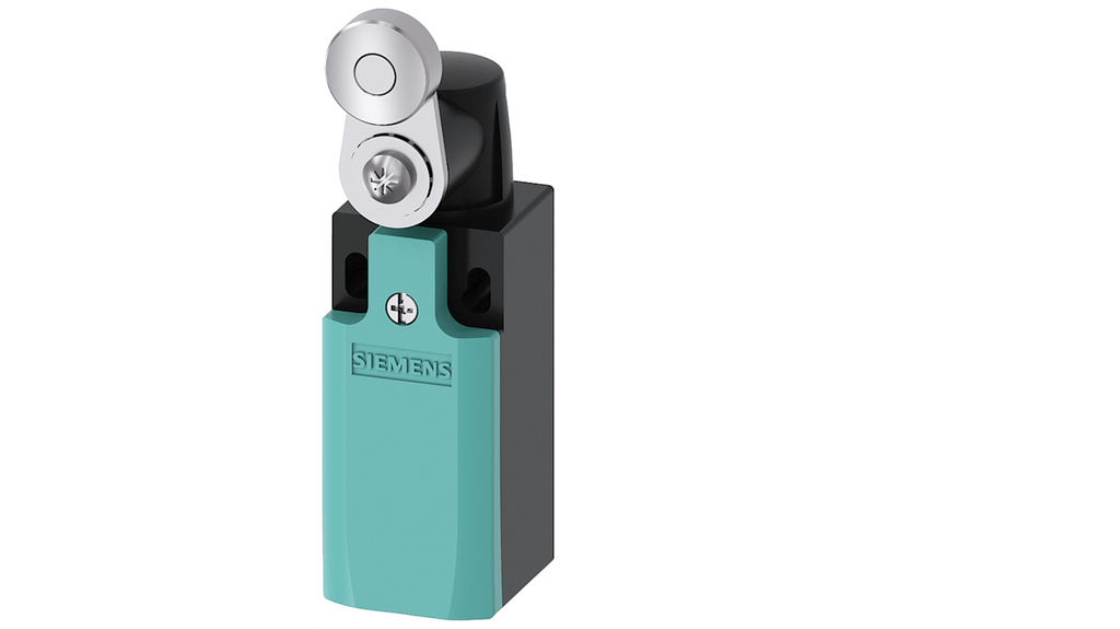 Interruttore di fine corsa Siemens, leva a rullo, 1NC/1NA, 400V, 4A, IP65. Contenitore in plastica conforme a EN 50047, collegamento dispositivo con ingresso cavo da 31 mm (M20 x 1,5), apertura positiva, classe di protezione IP66/IP67. Adatto per interruttore di sicurezza.