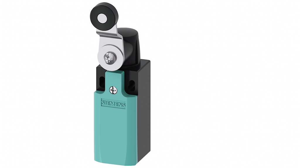 Interruttore di fine corsa Siemens, rullo, 1NC/1NA, 400V, 4A, IP65. Contenitore in plastica conforme a EN 50047, collegamento dispositivo con ingresso cavo da 31 mm (M20 x 1,5), apertura positiva, classe di protezione IP66/IP67. Adatto per interruttore di sicurezza.