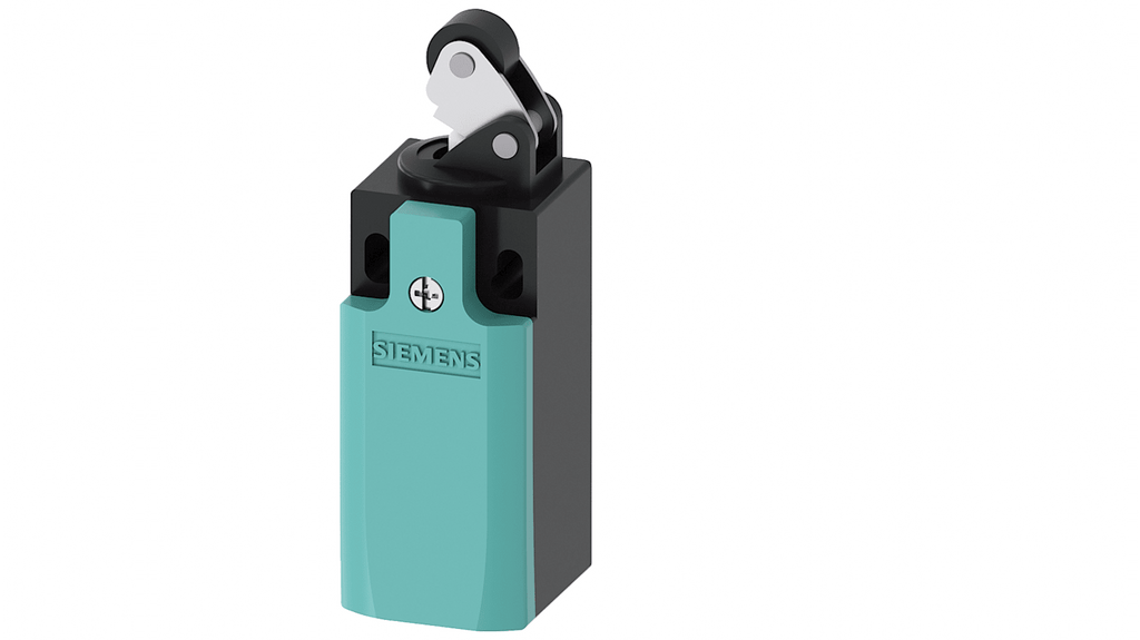 Interruttore di fine corsa Siemens, rullo, 2NC/1NA, 400V, 4A, IP65. Contenitore in plastica conforme a EN 50047, collegamento dispositivo con ingresso cavo da 31 mm (M20 x 1,5), apertura positiva, classe di protezione IP66/IP67. Adatto per interruttore di sicurezza.