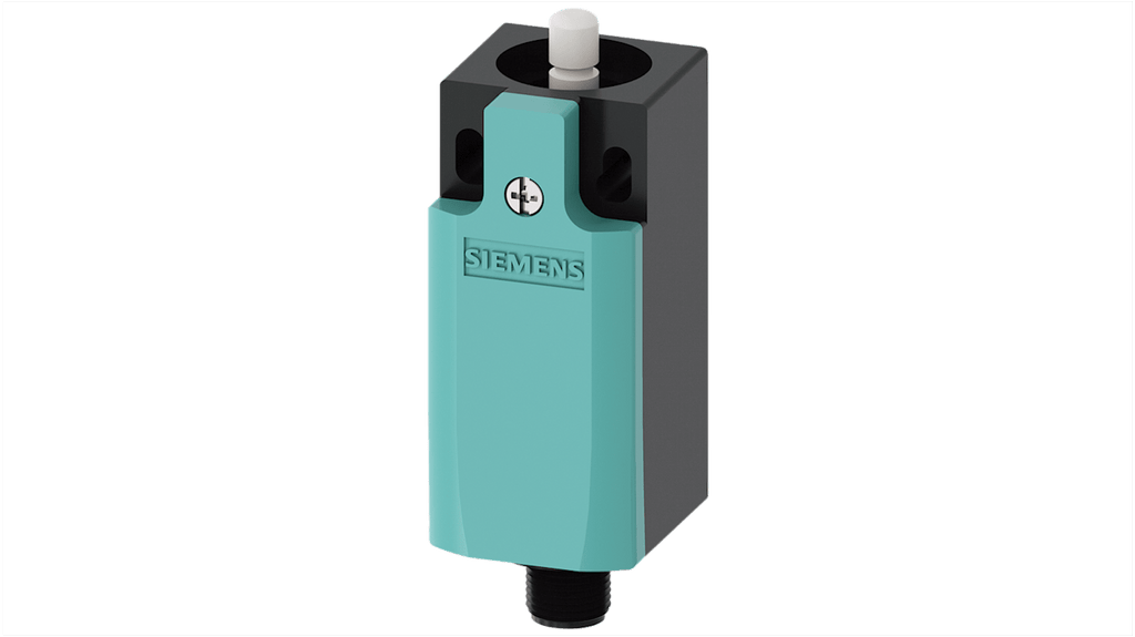 Interruttore di sicurezza Siemens, stantuffo rotondo, configurazione 2NC/1NA, tensione massima 125V, corrente massima 4A, grado di protezione IP65, contenitore in plastica conforme a EN 50047, connettore maschio M12 fisso, adatto per moduli I/O a blocco compatto SIMATIC ET200. Codice costruttore 3SE52340LC051AE2.